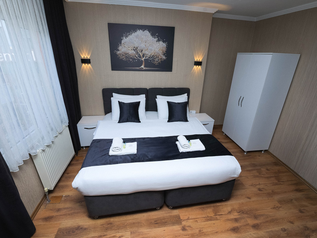 Çift Kişilik Odamızda Bir Adet King Double Yatak, Klima, Mini Buzdolabı (0,5 ml 2 adet su ücretsiz), Su Isıtıcı (2 Adet Sallama Çay ücretsiz ), Led 32 inç Uydu TV, Oda Telefonu, Buklet Şampuan, Duş Jeli, Terlik, Sabun , Otel Tipi Dikiş Seti , Saç Kurutma Makinası bulunmaktadır.